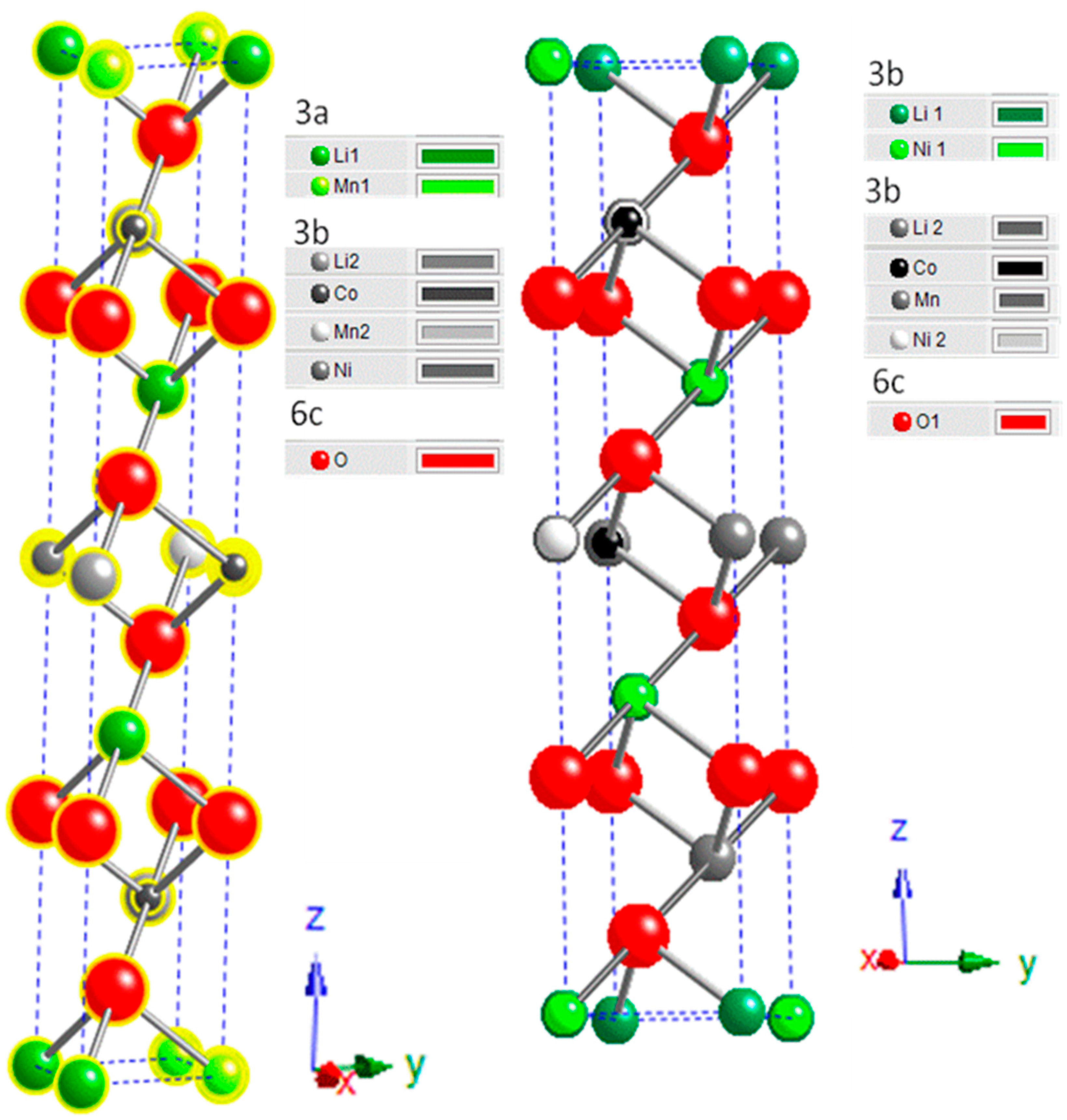 - Stoyanova, R.; Zhecheva, E.; Zarkovam, L. Effect of Mn-substitution for Co on the crystal structure and acid delithiation of LiMnyCo1–yO2 solid solutions. Solid State Ionics 1994, 73, 233–234. [Google Scholar] [CrossRef]