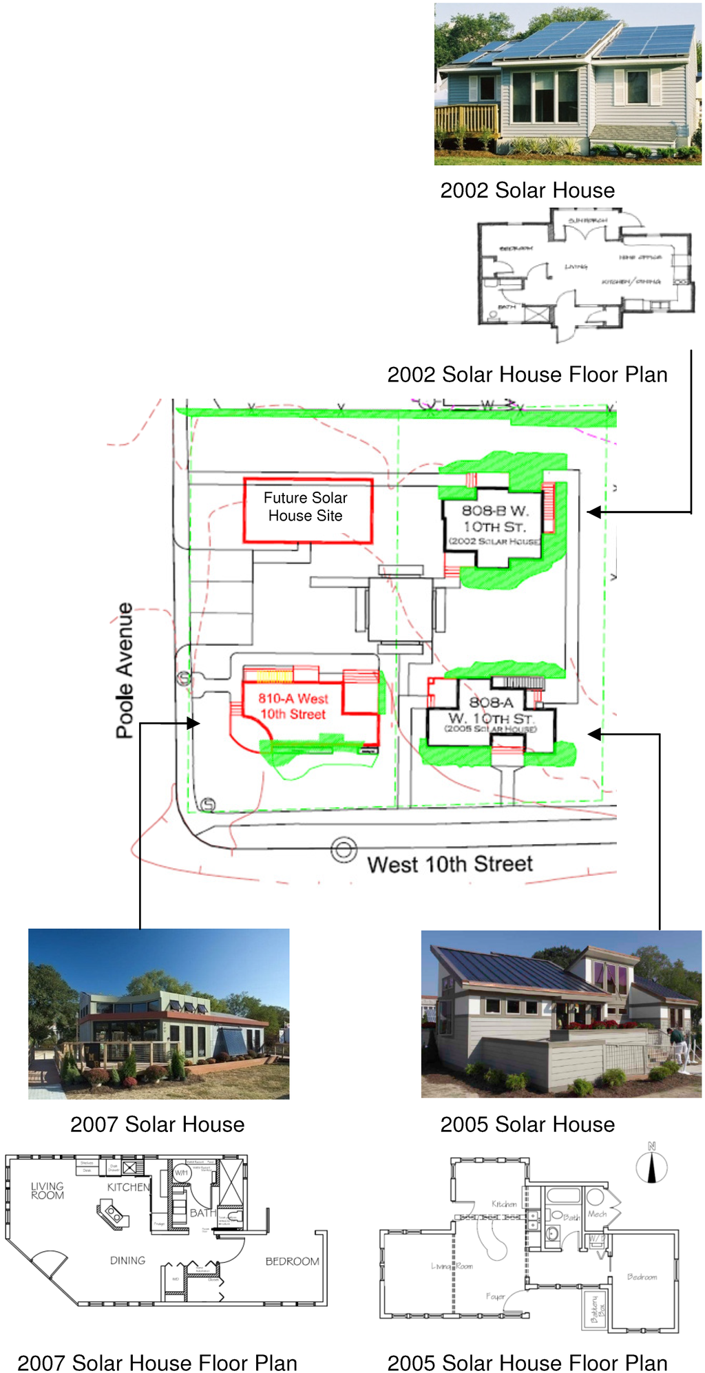 The Missouri S&T Solar Village is a plot of land that consists of three solar homes that have been built by the University for the purpose of competing in the U.S. Department of Energy’s Solar Decathlon, a collegiate competition to design and build high performing solar houses. These houses are fundamentally different from typical residential houses in that they have been designed for competition with new or different from mainstream building materials and systems. They have also been designed to be modular and have the ability to be constructed and deconstructed in a matter of days. These houses are 1–2 persons, 1-bedroom homes limited to an exterior footprint of 800 square feet. They each reside on an unconditioned basement that contains all the mechanical systems of the house and are serviced only by electricity and water from the city. The houses also all have photovoltaic and solar thermal panels for the production of electricity and hot water respectively. Figure 1 shows a picture of the solar homes and the physical layout of the Solar Village.