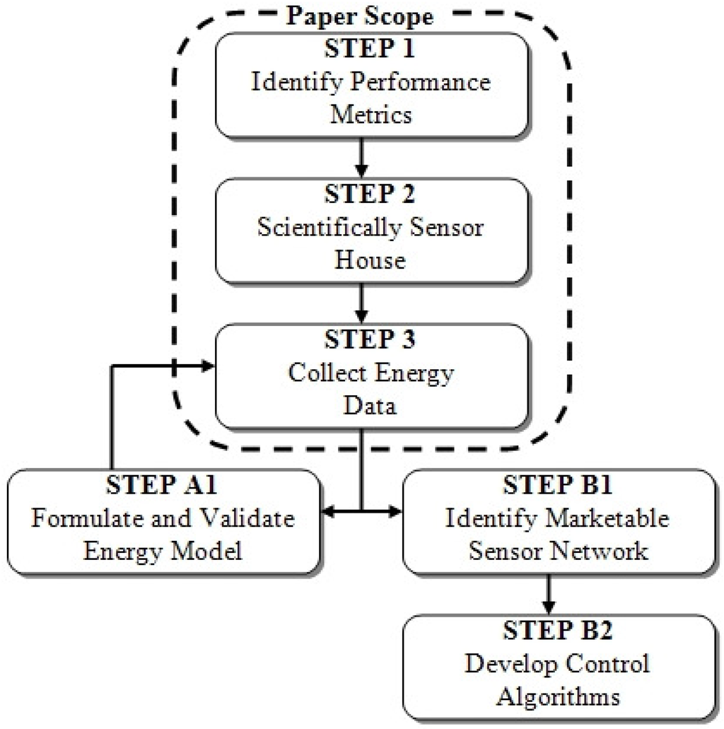 The first steps in this project and reported in this paper include defining the sensor system configuration in the experimental houses (i.e., the S&T solar village homes) to support the development of the energy model and the control algorithms. Figure 2 is a representational block diagram of the overall research approach.