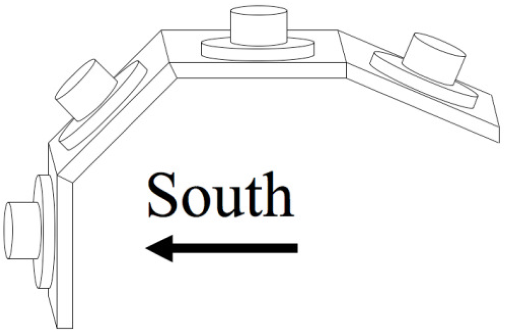 First, a pyranometer is placed on the array to measure the incident solar radiation on the surface of the array. In the case of the S&T performance project, there are 3 houses with five different angles of the photovoltaic and solar thermal arrays. To simplify monitoring and to be more versatile, the pyranometers will not be attached to each house. Instead a group of four sensors will be located in a weather station at horizontal, vertical, and 45 degree angle all facing south with a north facing sensor in the plane of the north facing array on the 2005 house. In this arrangement the incident radiation upon any plane can be interpolated with reasonable accuracy. Figure 5 shows a diagram of the aforementioned pyranometer array.
