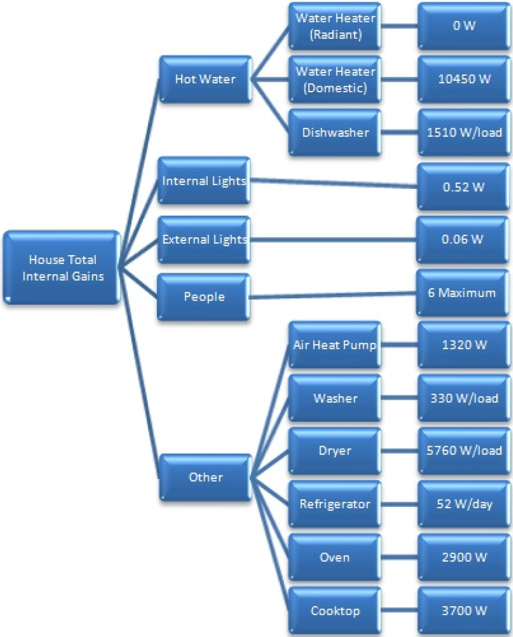 Therefore “1” was inputted as the relative value for the hour during which the hot water draw occurred. Similar calculations were preformed based on the information presented in Table 1 and Table 3. A summary of all of the loads can be seen in Figure 2.