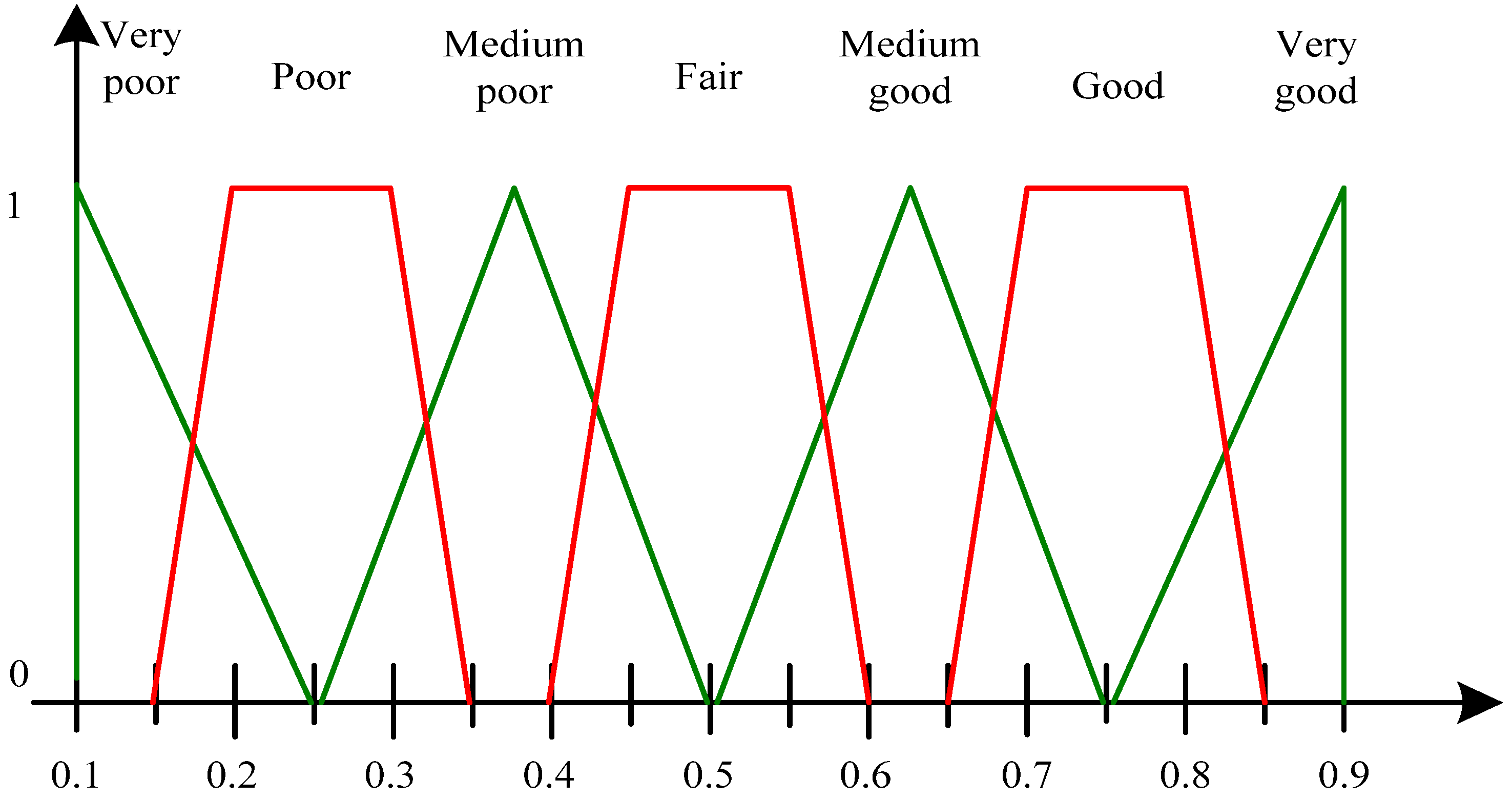 Figure 4. Membership function of fuzzy numbers for ranking.Figure 4. Membership function of fuzzy numbers for ranking.
