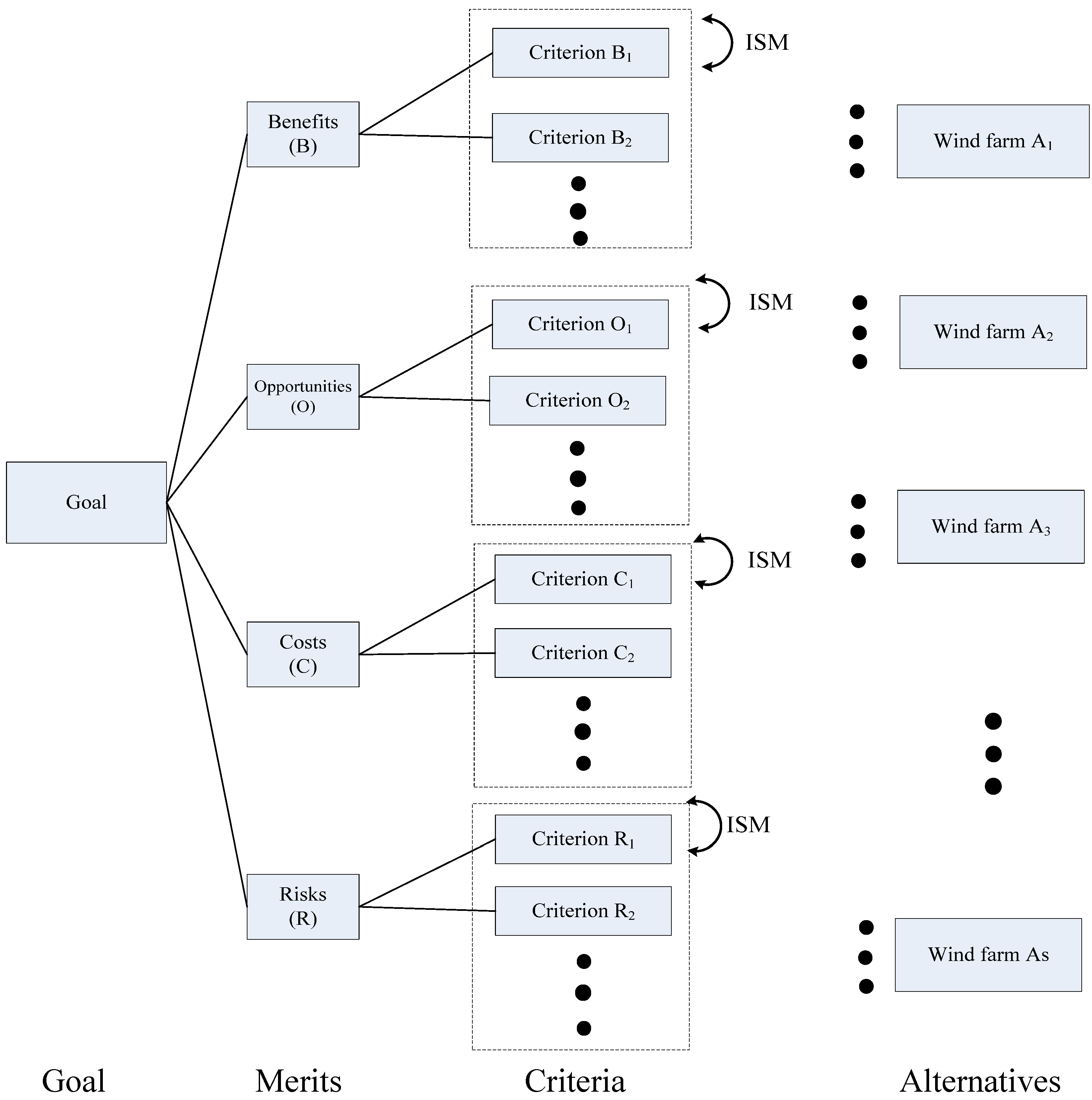 Figure 5. The BOCR with ISM network.Figure 5. The BOCR with ISM network.