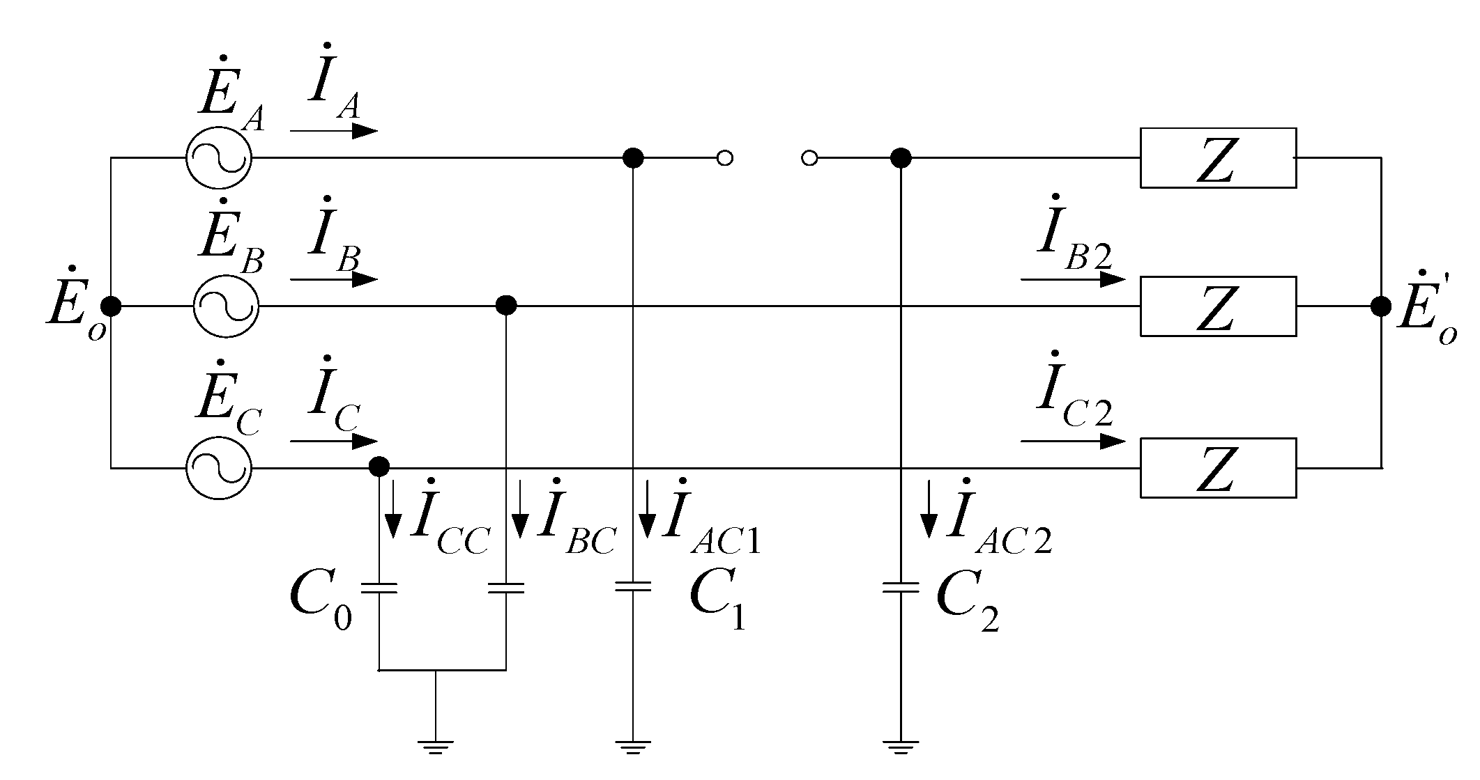 This means the currents flowing through the loads are independent of the neutral point voltage. In practice, current in each phase is composed of load current and the system-to-ground capacitive current. According to Shott and Peterson’s research [