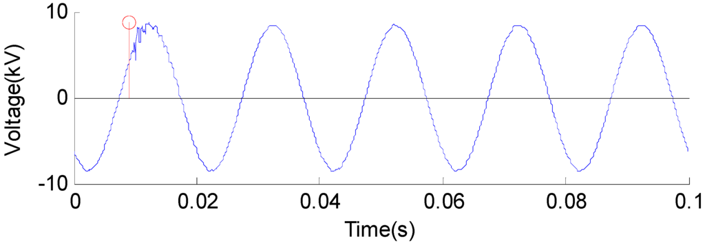 - Find out how many over-voltages occur in the original waveform (see Section 4.3). Assume M is the number of the over-voltages and T (T = T1,T2,T3,…,TM) are the time points when they occur. In order to facilitate the description below, T represents the separated time points in this paper.