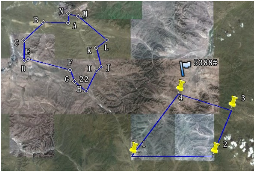 Figure 1, the areas circled by “A→M” and “1→4” are two areas reserved for the potential construction of two wind farms in the future. The anemometer remarked as “#5388” is close to both areas and it records the wind speed at the heights of 10, 30, 50 and 70 m, respectively. The monthly wind speeds of ZHZE are as listed in