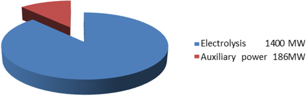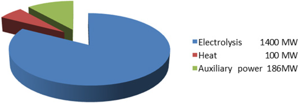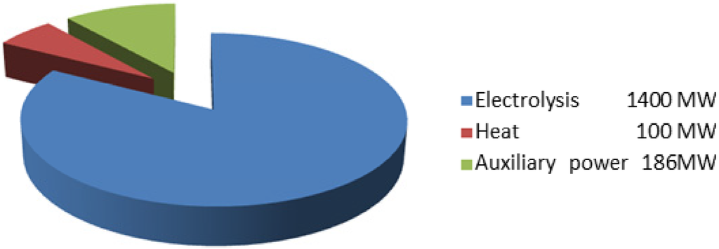 Figure 10, the estimated load is 1686 MW in total, including 1400 MW electrolysis load, 100 MW heating load and 186 MW auxiliary power load.
