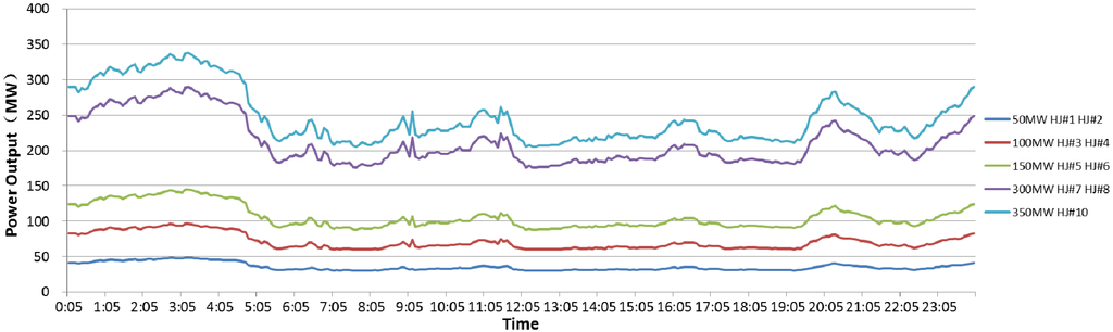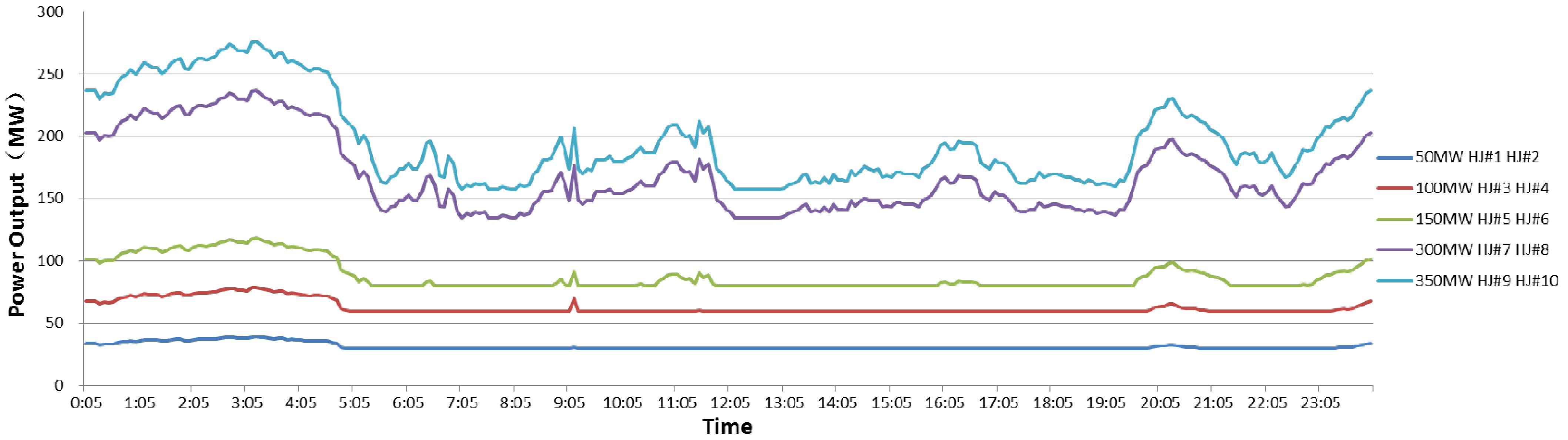 Coal-fired generators have full capacity of participating in the power balancing control. Still, there are two limitations. Firstly, the power output must be within a valid region. The maximum output is the rated capacity and the minimum output of each generator is listed in
