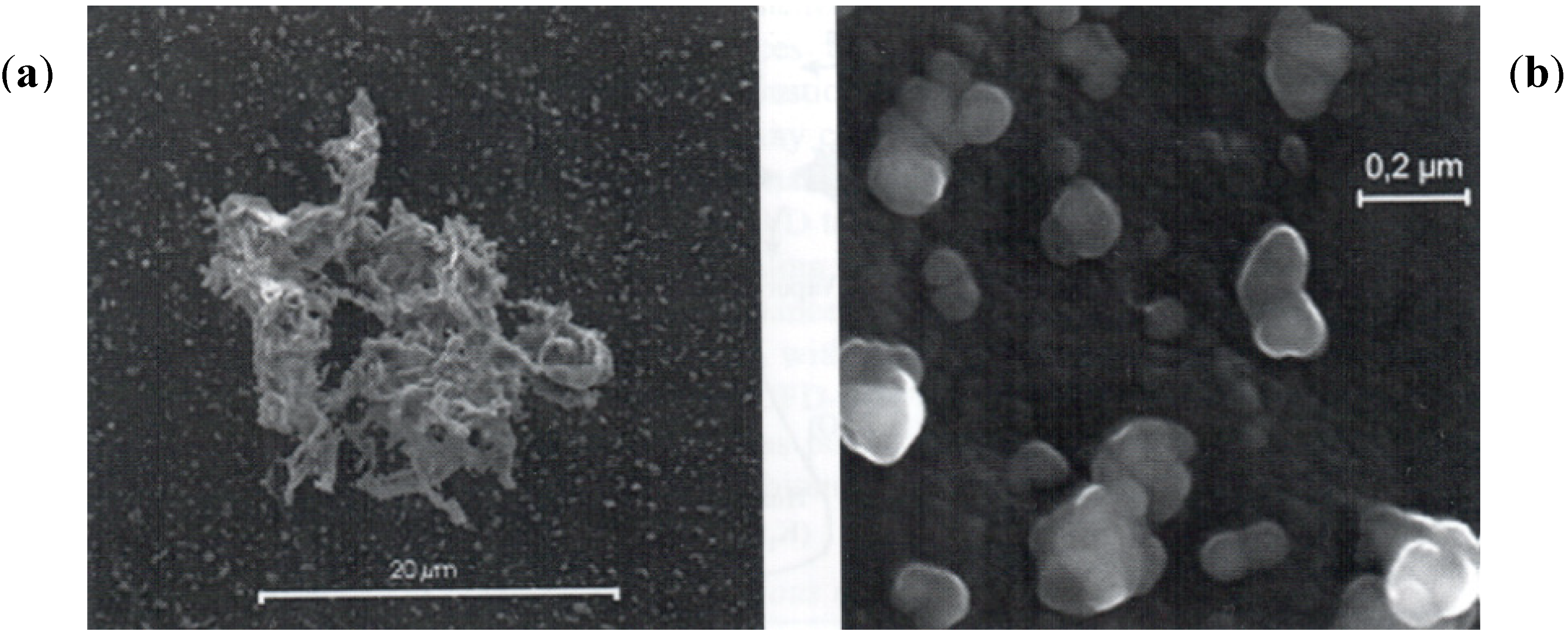 Figure 2. SEM-EDX images of coarse fly ash (a) and aerosol particles (b) from wood combustion in a grate furnace [57].