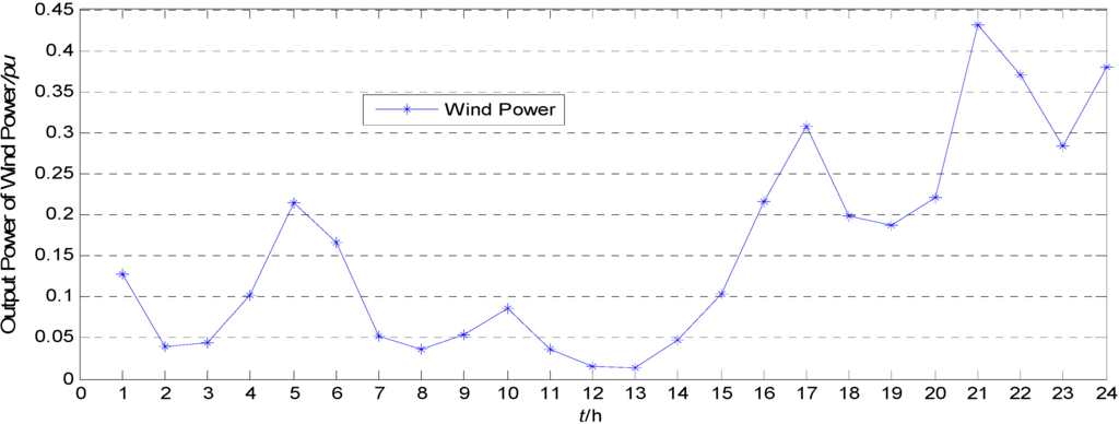 where M is the number of wind-powered generators, is the real power output of the m-th wind-powered generator at the t-th hour, is the system load demand of t-th hour.