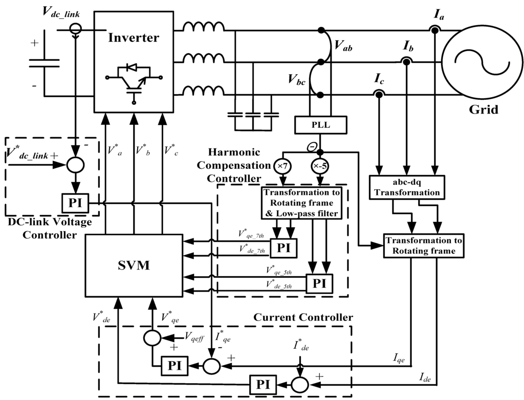 Figure 6 shows the inverter control block diagram which contains a DC-link voltage controller, a current controller which is the controller part of Figure 5, and harmonic compensation controller.