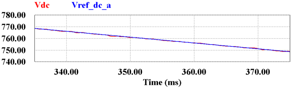 Simulation results for the DC-link voltage and Vref_dc_a.