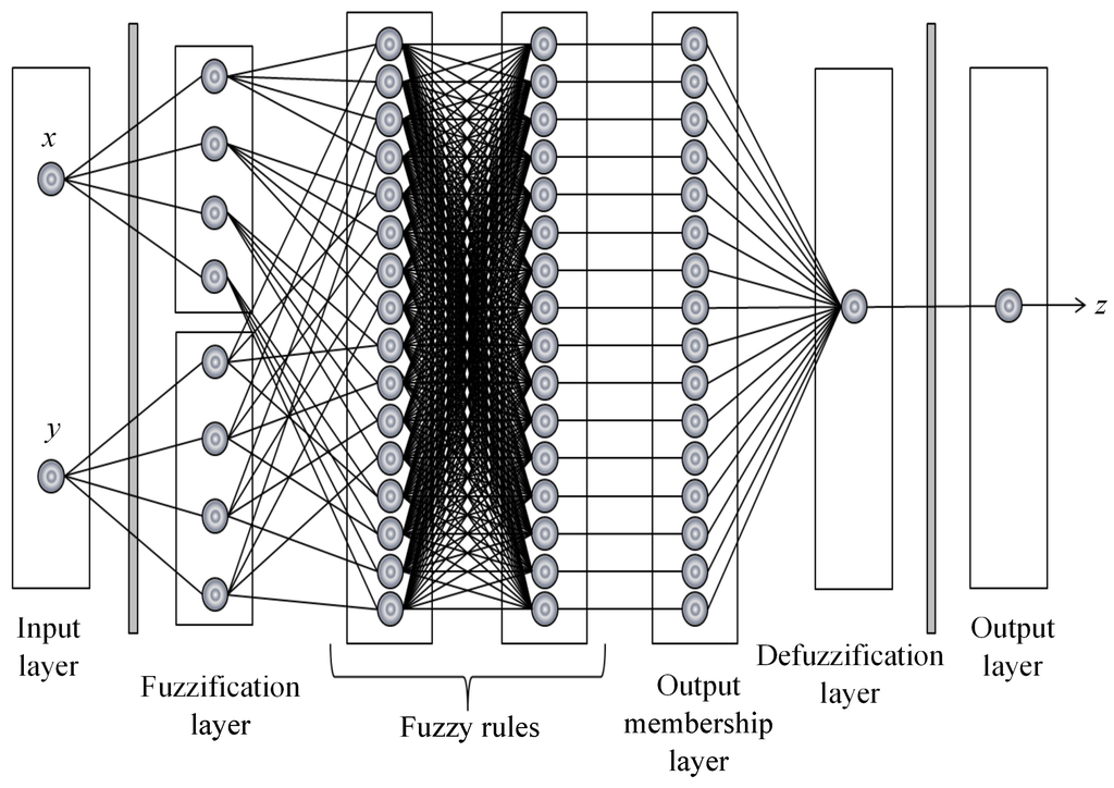 Adaptive neuro-fuzzy inference system (ANFIS) model structure.