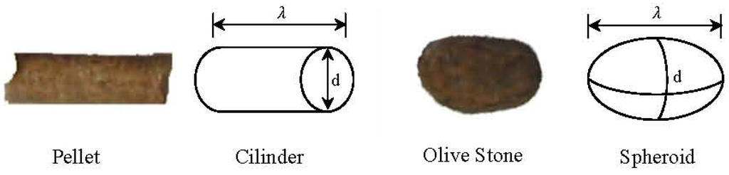 Once the characteristic particle size of each fuel was determined, the equivalent radius and sphericity were calculated (Table 2):