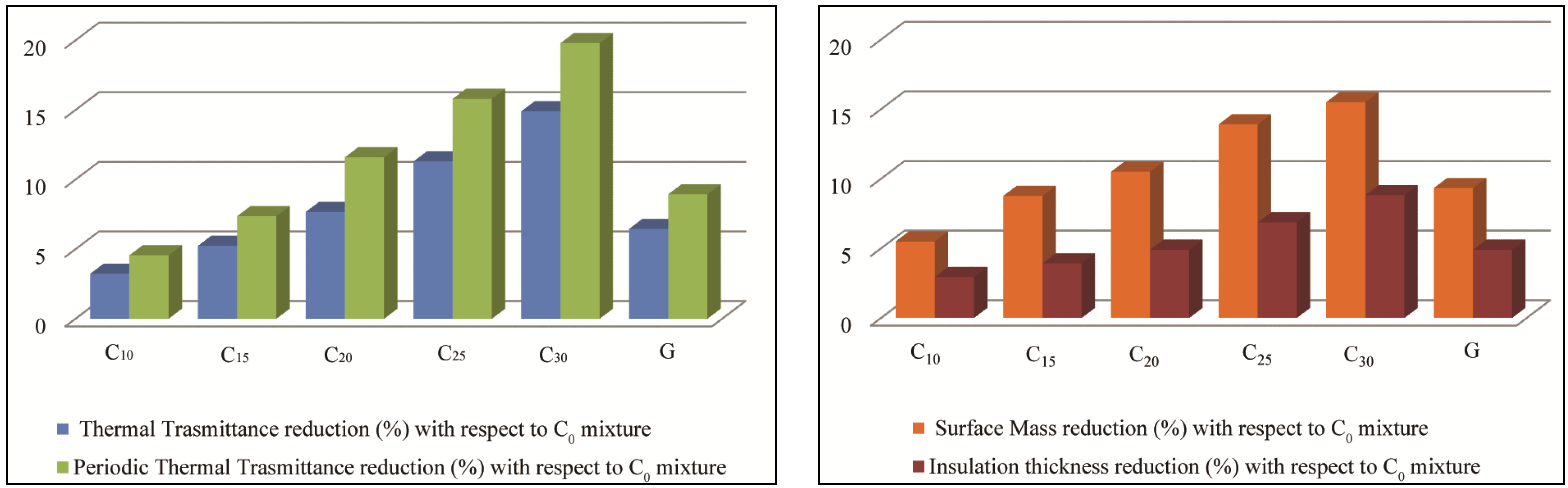 Therefore, the use of structural and non-structural alternative materials with lower thermal conductivity and specific heat capacity than the traditional ones can contribute to reduce heat losses and temperature oscillations of the building envelopes, with consequent reduction of energy consumptions and related emissions. Moreover, the choice of recycled materials as alternative would have a positive impact on both construction and recycling sectors, with consequent increase of energetic efficiency on broad scale.