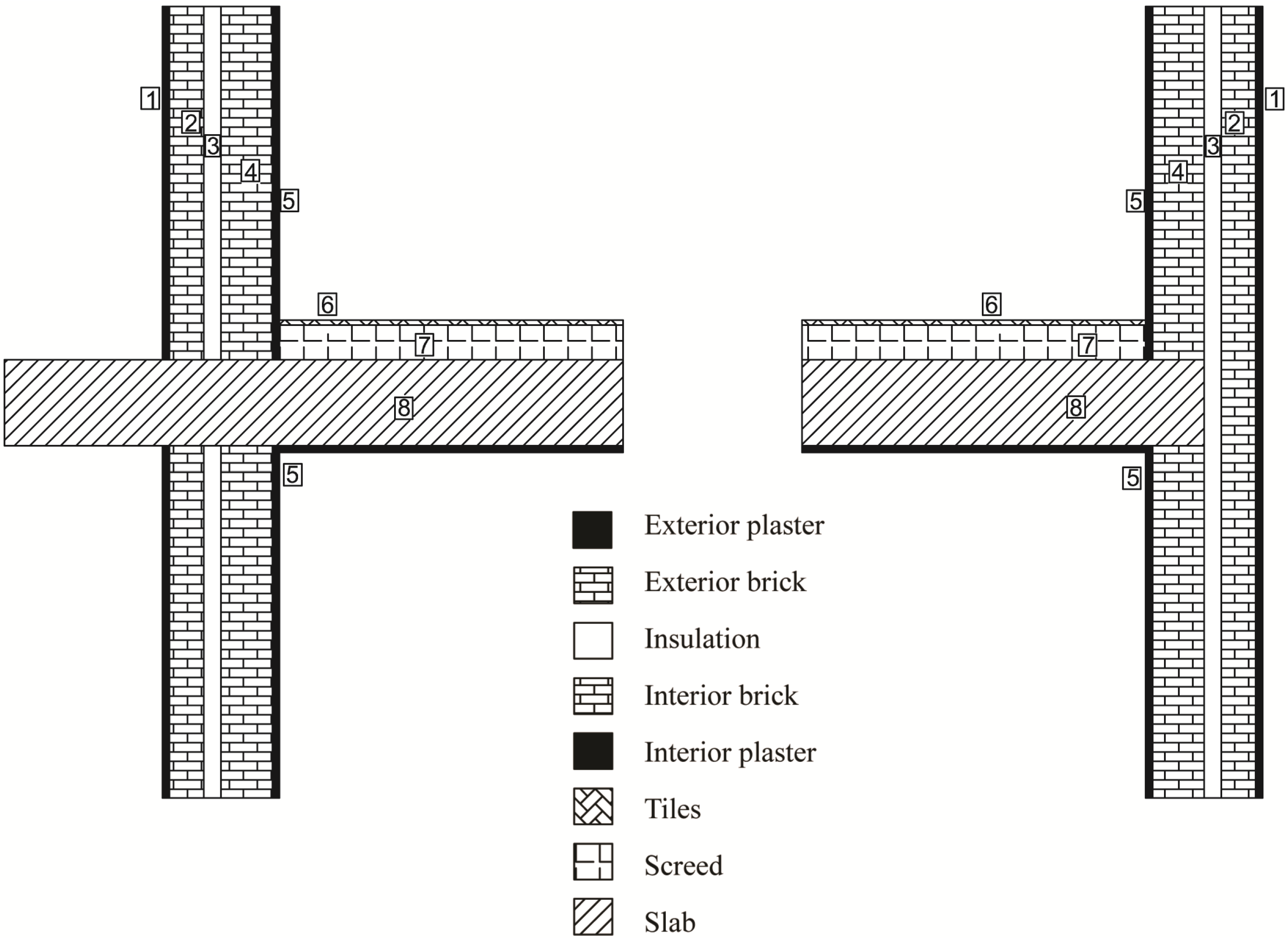 | Interior Brick | n.4 in Figure 6 | 0.50 | 27 | 1400 | 840 | 0.15 |