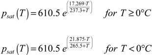 | psat(T) | saturation pressure of water at temperature T (Pa) |