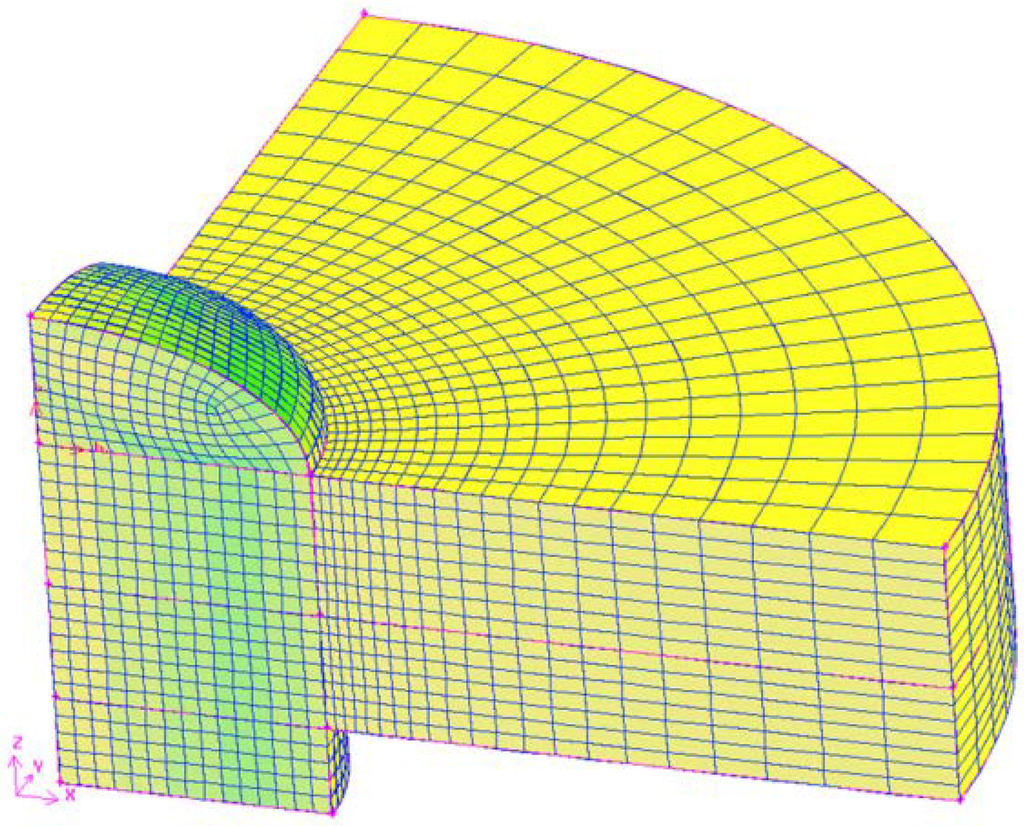 Computational quadrant with 3D meshing.