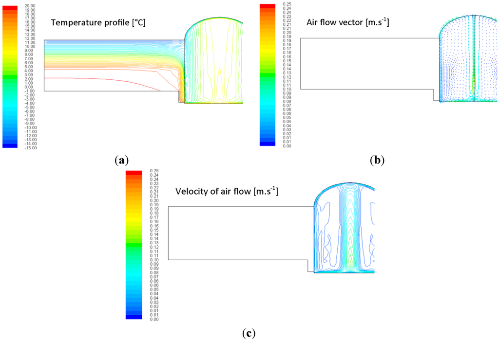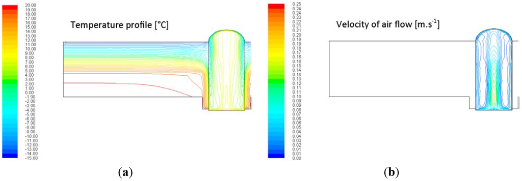 - Maximal accessible velocity of air flow in the whole domain—to 50% (max. velocity is lower than 0.15 m·s−1);