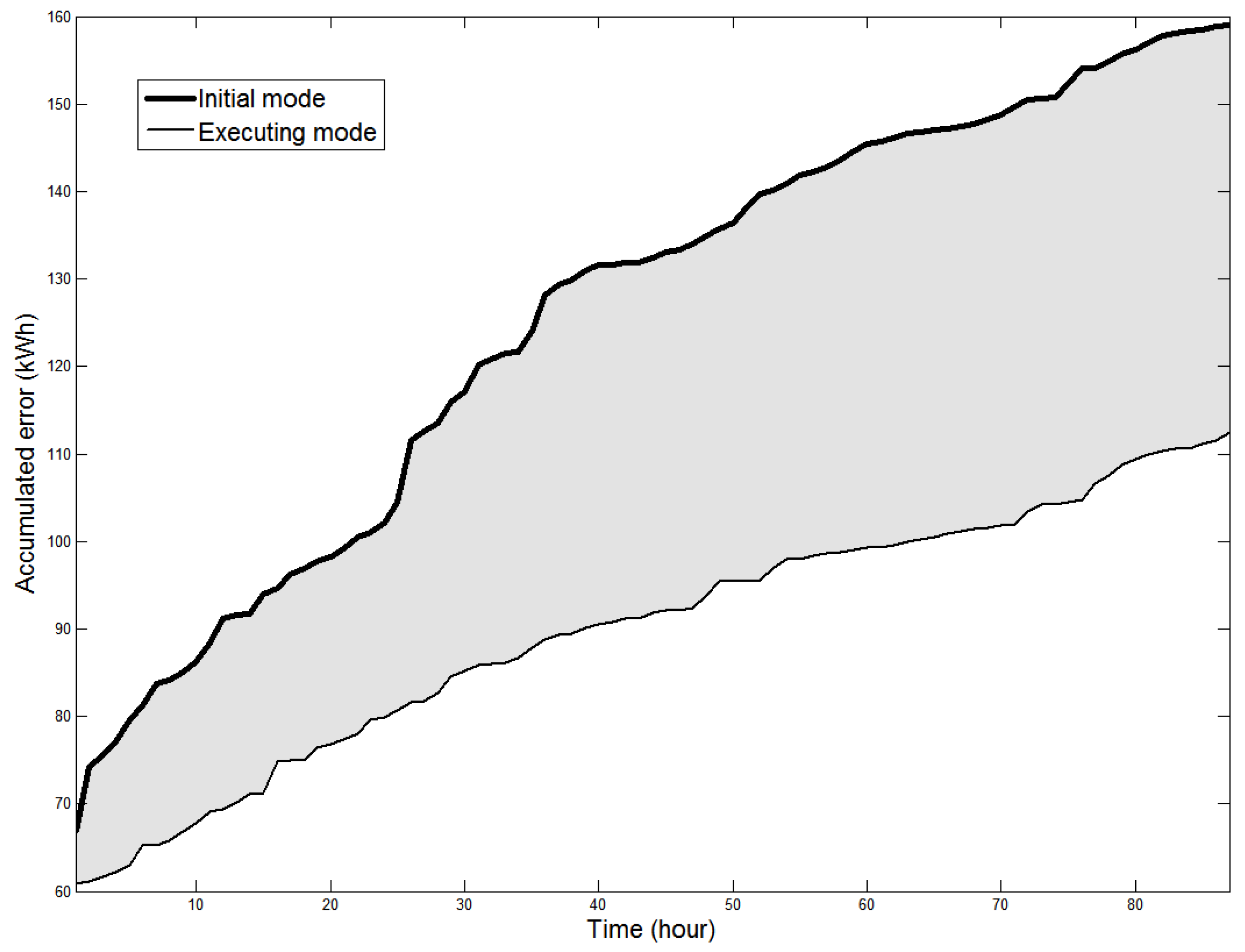 Figure 1 illustrates a case where the forecasting scheme using a fixed model fails to perform best, and thus, the accumulated error increases dramatically when the load characteristics are changed. It also includes a desired performance obtained through proposed model switching, as detailed in