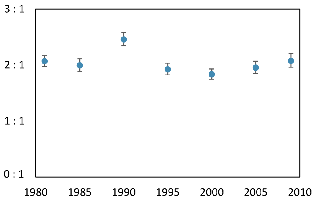 | Inputs/Outputs | Year | 1981 | 1985 | 1990 | 1995 | 2000 | 2005 | 2009 |