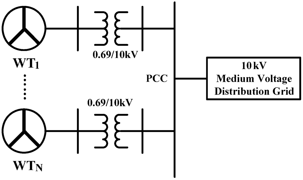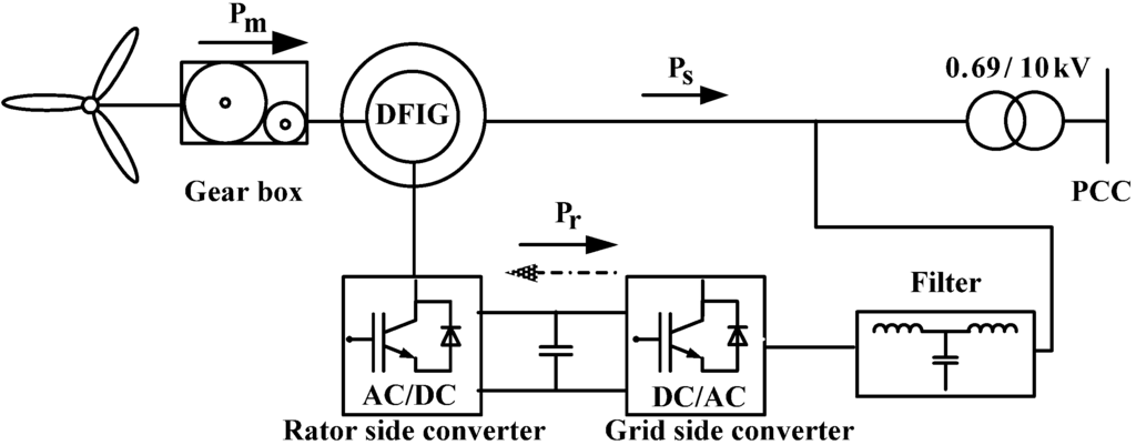 The most common forms of wind generation contain asynchronous generators (AGs), doubly-fed induction generators (DFIGs) and direct-drive generators. In this paper, the DFIG is modeled to study the harmonic propagation in the distribution grid. The topological diagram of the small-scale wind farm is shown in Figure 1.