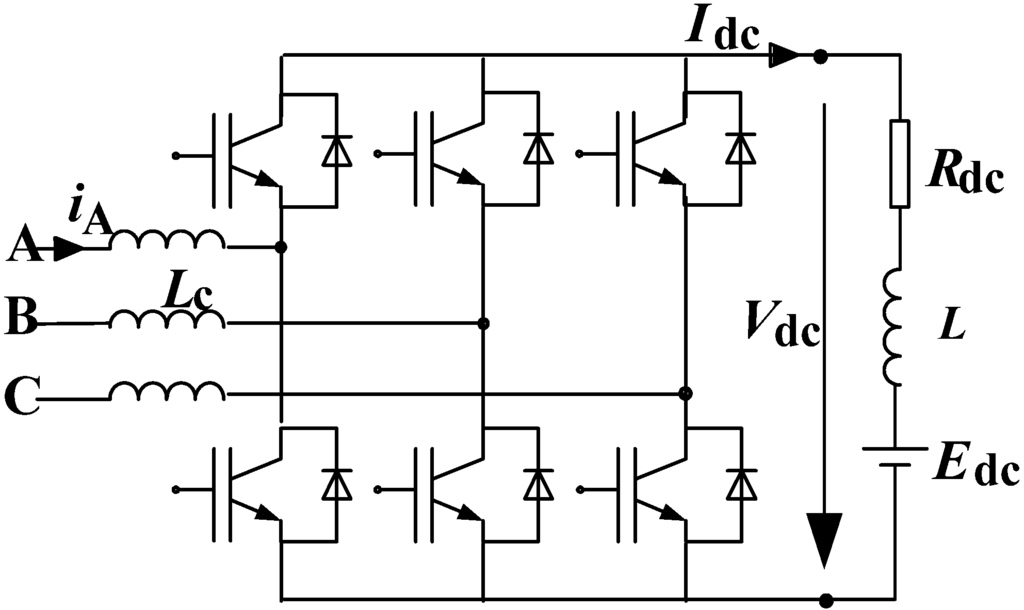 The topological diagram of AC/DC converter with the equivalent load is shown in Figure 6. Edc is the equivalent voltage source on the DC side; Rdc is the equivalent resistance; L is the DC side smoothing inductance, commutation angle and inductance are μ and LC; α is the thyristor firing angle; Idc is the DC current mean value; Vdc is the DC voltage mean value; Vac is the DC side phase voltage.