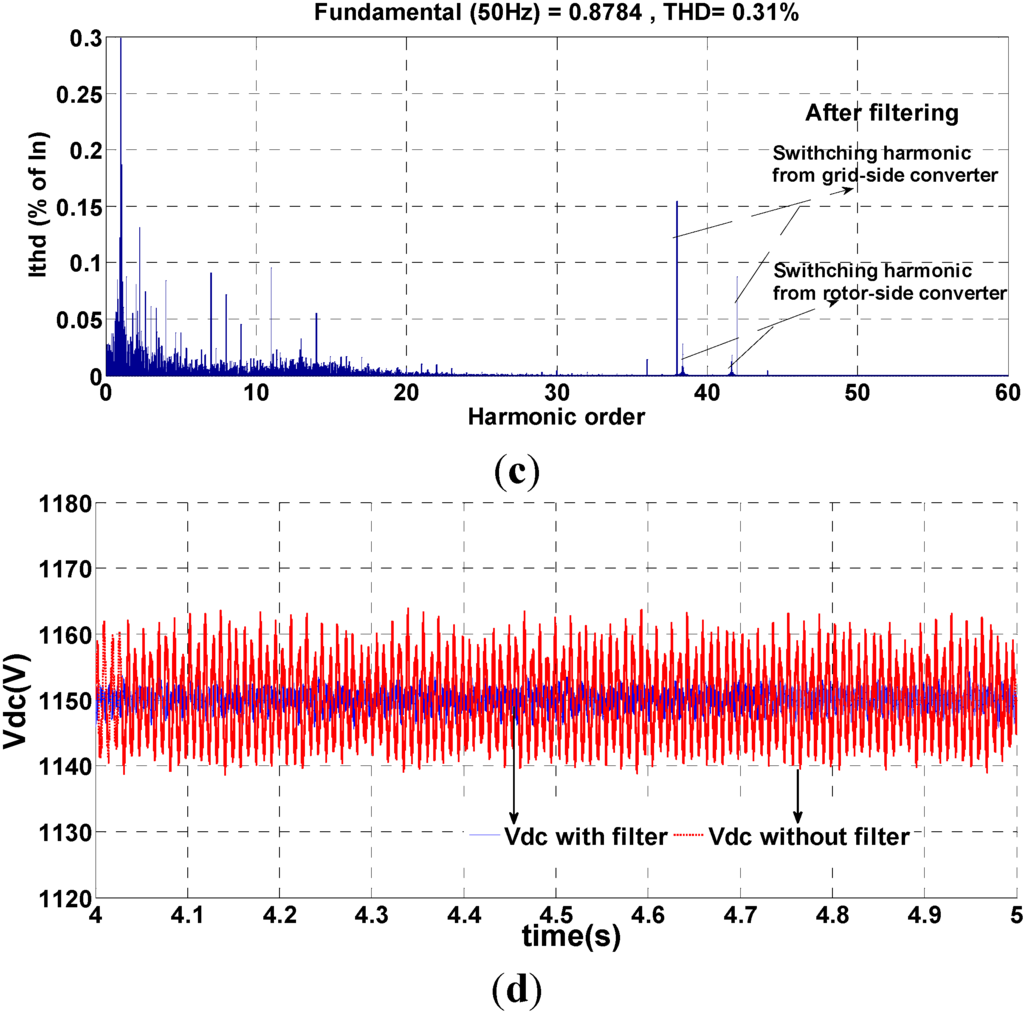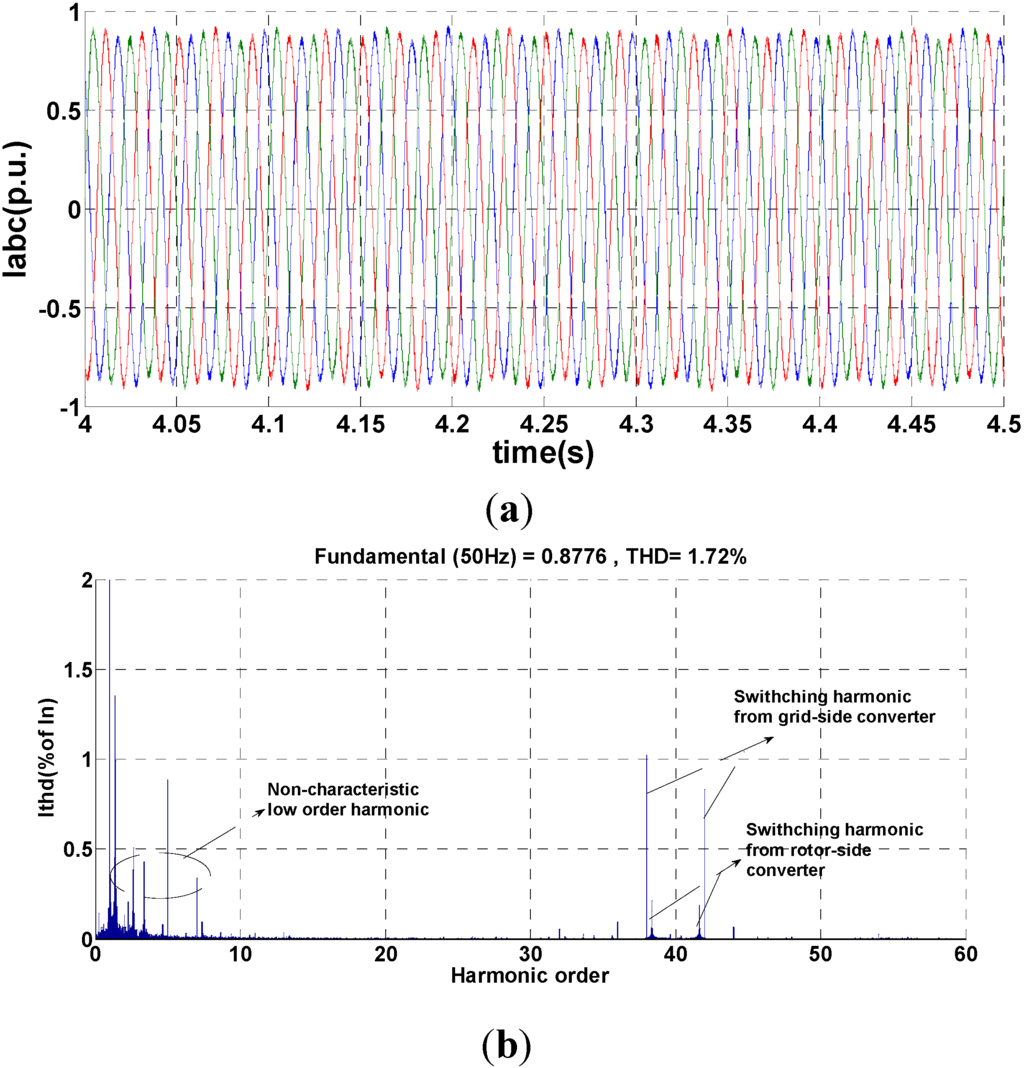 Similar to the harmonic emissions of the grid-side converter, the switching harmonic order of the rotor-side converter is frc ± 2|sfe|.