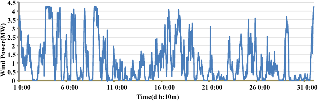 The system impedance in the distribution grid is highly resistive, and the voltage fluctuation at the Point of Common Coupling (PCC) is strongly affected by wind power smoothing level [4,5]. Wind power data are non-stationary random signals because of the variable wind speed and wind energy conversion systems [6,7,8]. At the same time, the fluctuating fundamental power can affect the controller of conversion systems and induce harmonics, so the harmonic current emissions of wind generators are analyzed by stochastic assessment. New models and methods for harmonic propagation and interaction issues can be verified in several simulation systems, such as MATLAB/SIMULINK, PSCAD/EMTDC and HYPERSIM [9,10,11].