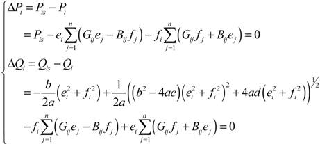 Define Pis as the active power, P − Q(V) nodes are used to represent the wind power nodes, and their corresponding power equations in the expanding Newton-Raphson models are given by Equation (2):