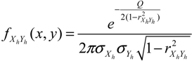 But the pdf of harmonic phasor amplitude is determined by Xh, Yh and their correlation coefficient. If rXhYh = 0, the pdf of harmonic phasor amplitude can be given by Equation (7):