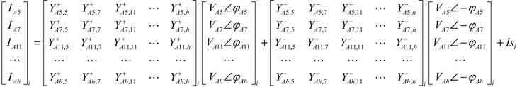 The harmonic power flow results are given by Equation (18) which reflects the admittance matrix of the distribution network, nonlinear converters and wind farm: