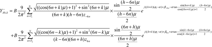 The harmonic admittance matrix of the converter is given by Equation (13), which establishes the frequency-domain linear relationship between harmonic voltage and current on the AC side [15]: