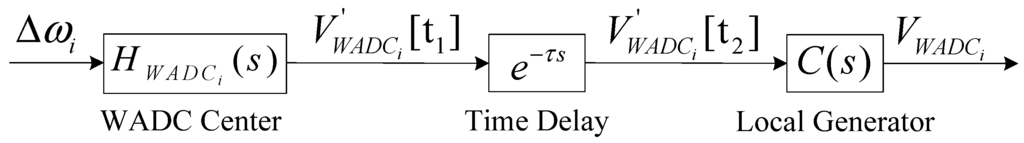 - Measure the signal time delay locally in the generator with the help of high resolution GPS time service and apply the signal time delay compensation to produce the required wide-area control signal feeding to the generator exciter in order to increase damping of the targeted inter-area oscillation mode.