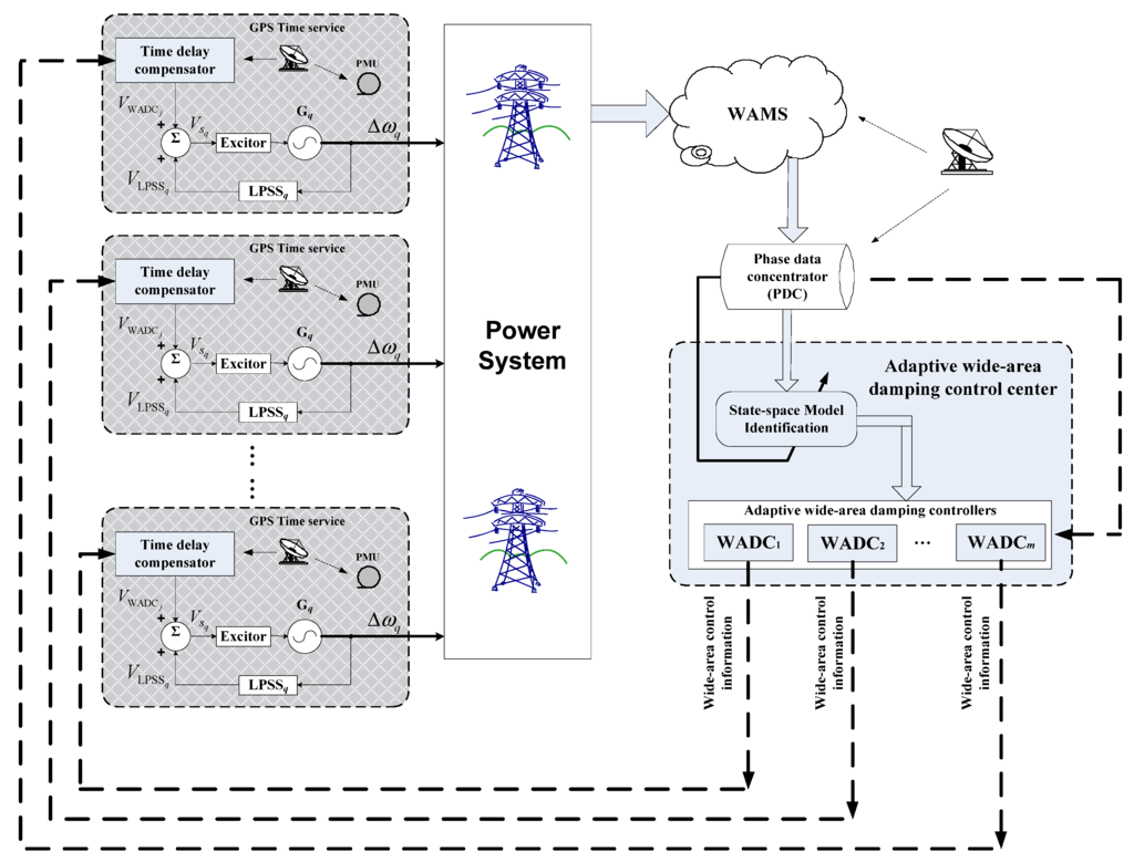 The proposed adaptive wide-area damping control scheme with online state-space model identification and consideration of time delay is shown in Figure 5.
