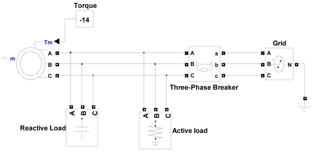 The aforementioned research is focused on the SEIG operation in standalone mode with respect to load variation. The work presented in [,] discusses the SEIG islanding operation under random settings of the local active and reactive load. There has been some interesting research published recently concerning the impacts of wind generation on the power grid and its stability [–]. However, there is no research published on the dynamic performance and the exact contribution of the active and reactive load to both voltage and frequency variations during disconnection/reconnection events and islanding of the SEIG. The focus of this paper is to analyse the effect of local active and reactive power control on the SEIG during disconnection/reconnection and islanding operation in order to define the optimum conditions for the SEIG. The optimum setting eliminates the risks of violating the frequency and voltage limits that are usually associated with islanding and disconnection/reconnection of the SEIG in power networks.