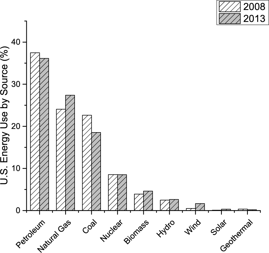 In recent years there has been increasing emphasis placed on energy use by society and the sources from which the energy that is used is derived. The motivations for this are multi-fold and include: growing concern for the environment and a desire to reduce quantities of Green House Gases (GHG) emitted during both energy production and consumption; economic with a desire to minimize energy consumption for industries that operate in regions with high energy prices so as to remain competitive; or even political as nations or regions look to become independent of other nations by altering the nature of their energy reliance. Examining U.S. energy flow diagrams produced by Lawrence Livermore National Laboratory using data from the U.S. Energy Information Administration [1] between 2008 and 2013, rit is possible to observe how U.S. energy use has changed over a relatively short period of time.