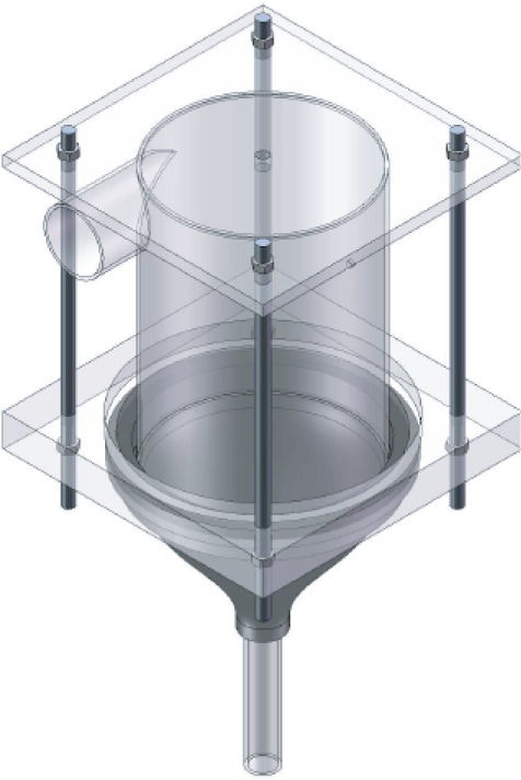 Figure 5 illustrates the final assembly of the Contoured SFE. The cylindrical cavity length was 12 inches (305 mm), the cylindrical cavity diameter was 8 inches (203 mm), and the inner diameter of the downstream tube was 1 inch (25.4 mm). The contour was custom-built with P400-ABS material, and constructed using a Fused Deposition Modeling (FDM)-Titan™ Rapid Protoyping machine from Stratasys Inc. (Dual headquarters in Eden Prairie, USA and Rehovot, Israel). A three-dimensional CAD model of the contour prototype was programmed into the FDM-Titan and grown layer-by-layer over a period of approximately 36 hours.
