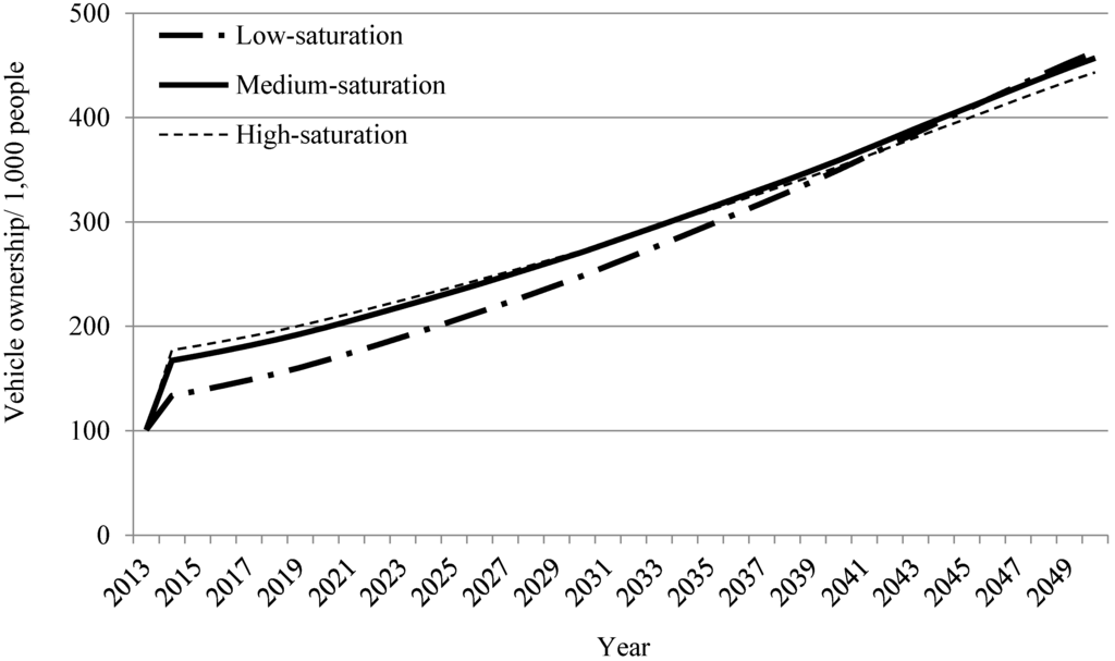 - Huo, H.; Wang, M. Modeling future vehicle sales and stock in China. Energy Policy 2012, 43, 17–29. [Google Scholar] [CrossRef]