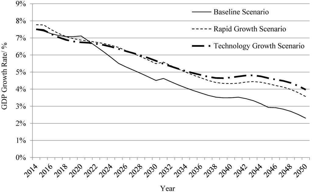 - Li, S. Prospect of Economic Growth in China from the Twelfth Five-Year Plan Period to the Year 2030. Rev. Econ. Res. 2010, 43, 2–27. (In Chinese) [Google Scholar]