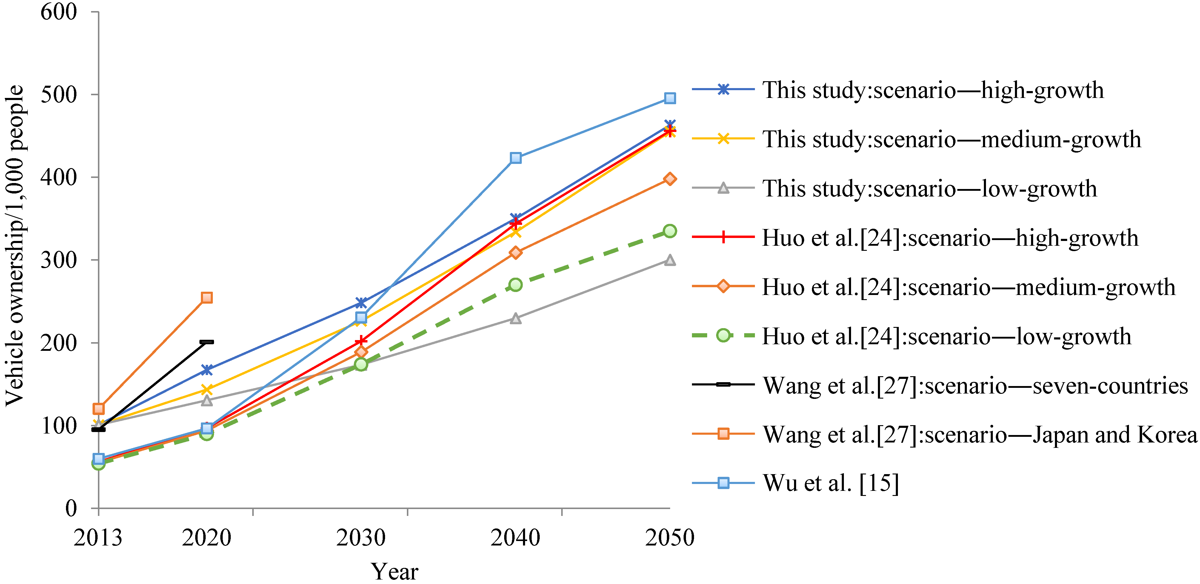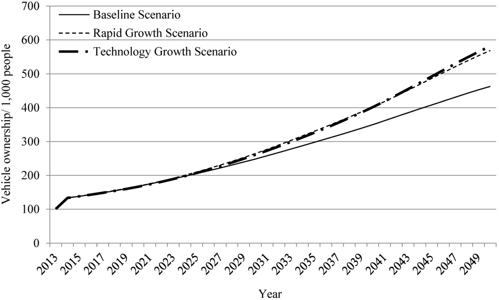 3.1.3. Projection of Chinese Vehicle Ownership