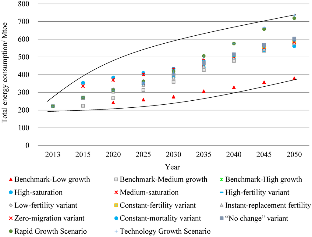3.2.4. Energy Consumption Projections under Different Scenarios