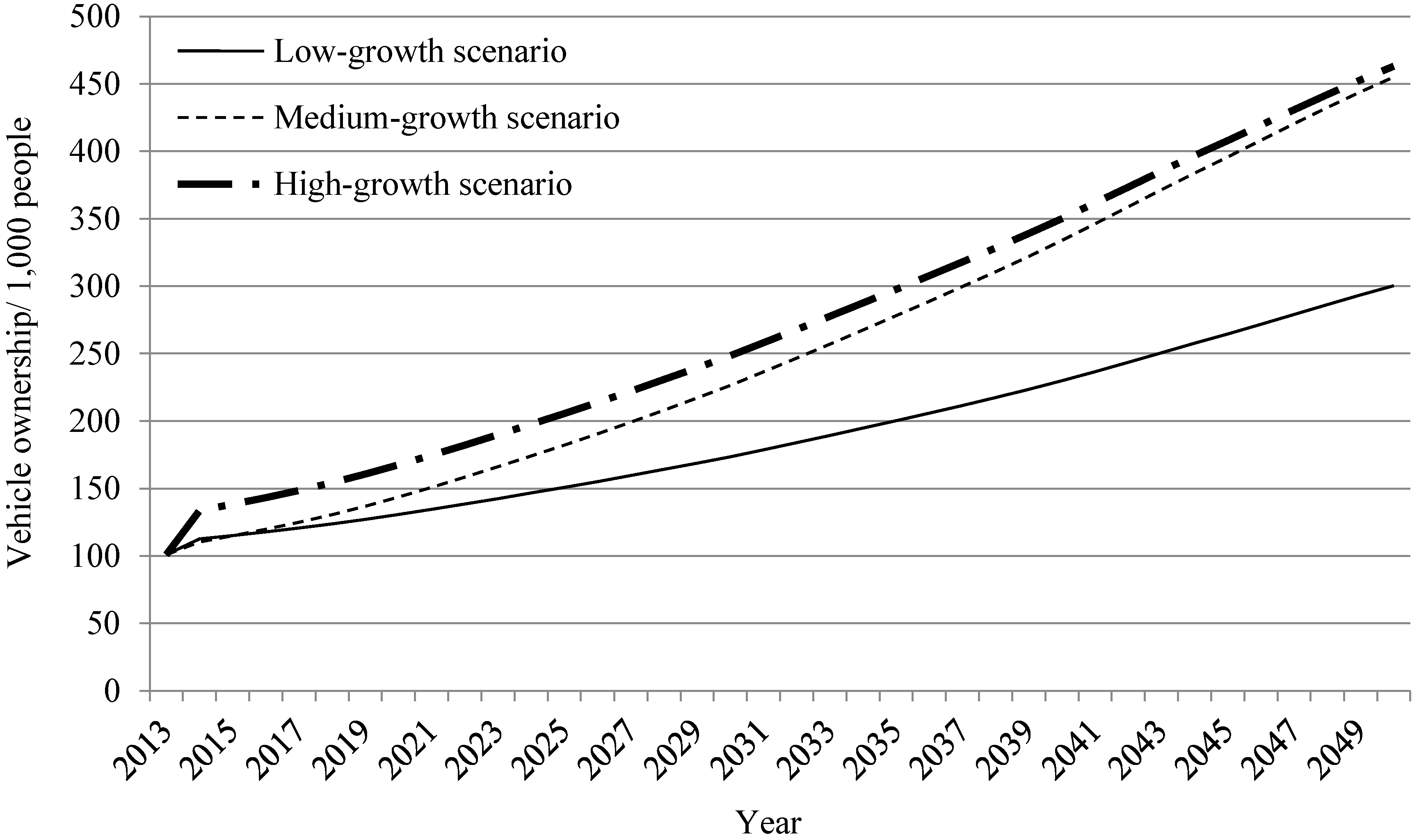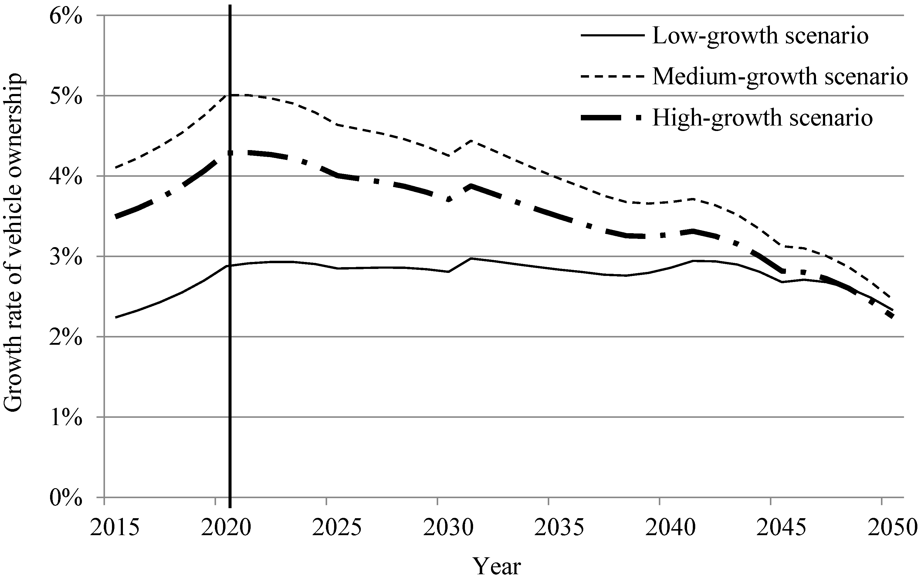 | Year | Low-Growth Scenario | Medium-Growth Scenario | High-Growth Scenario | |||||||||