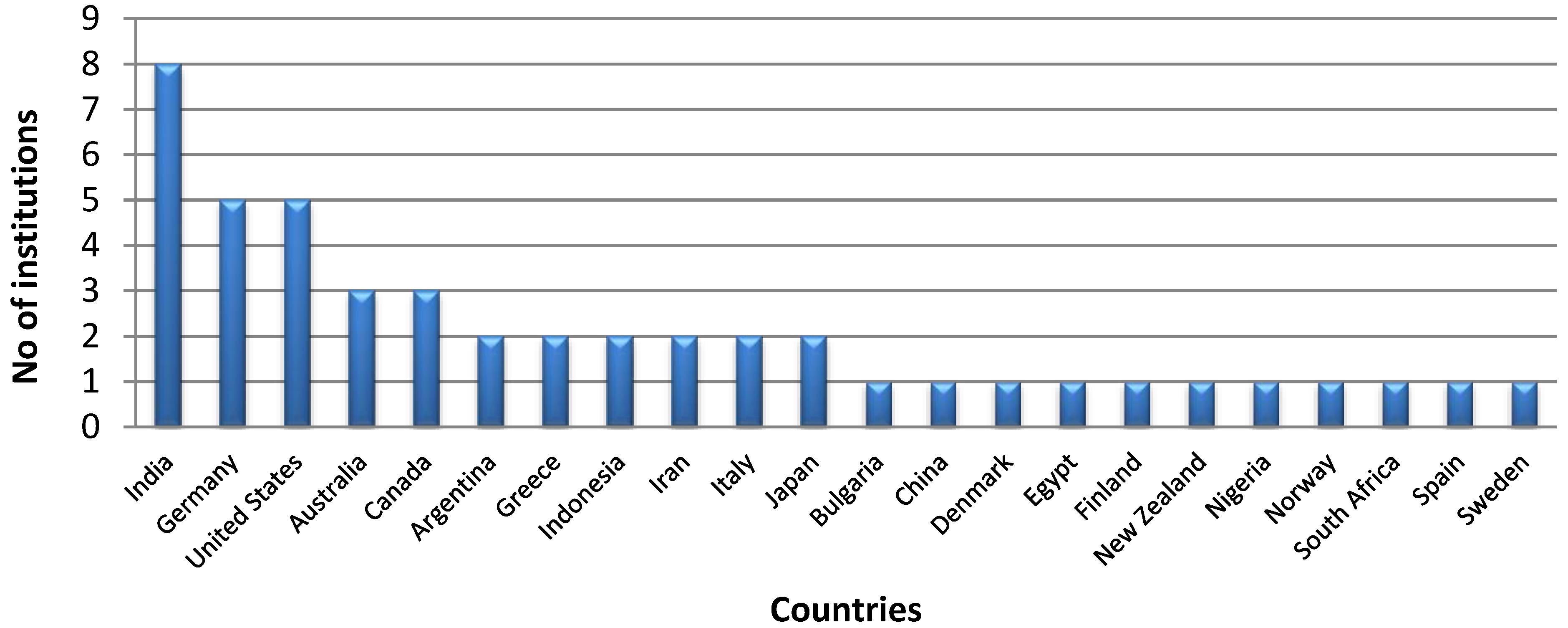 Out of the fifty one institutions that have contributed, Table 3 shows the top ten institutions in terms of contributions to the topic. Overall, diversity in the institutions contributing to this area is observed.