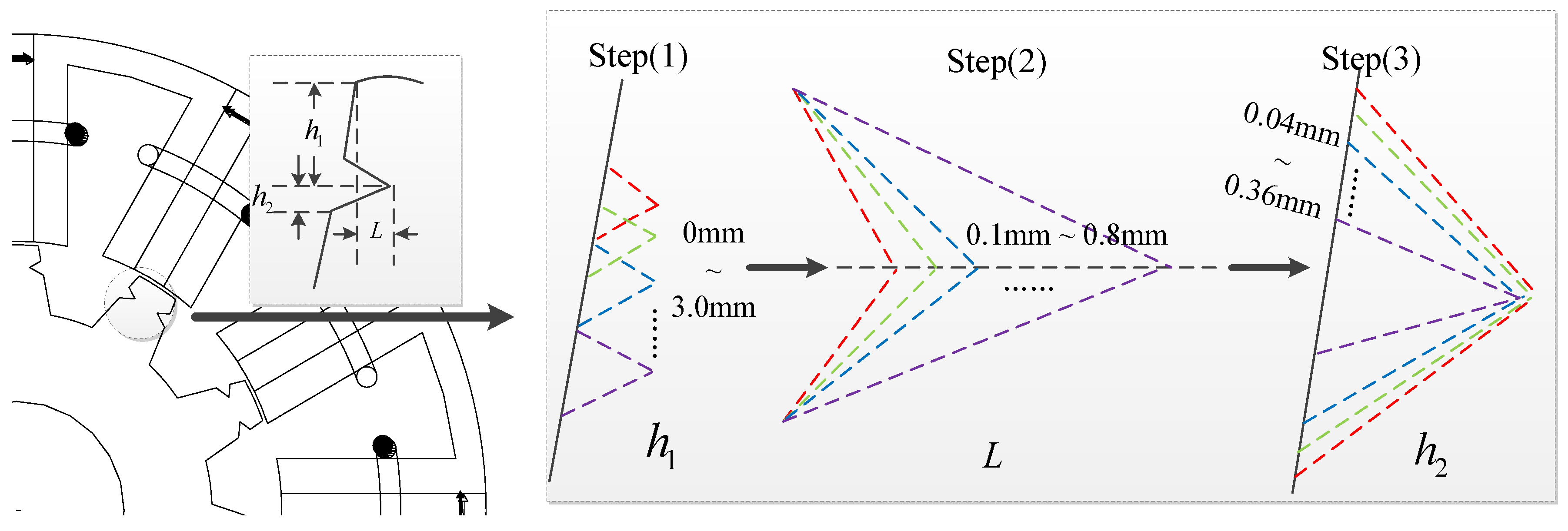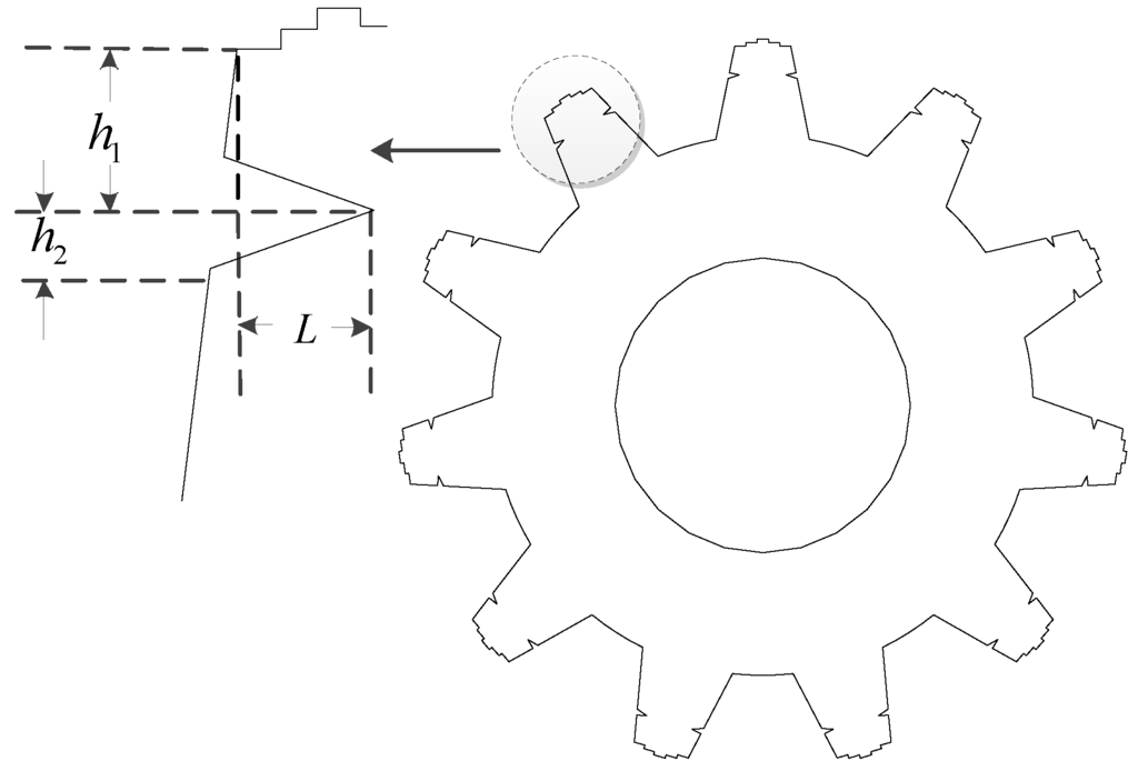The combination of the stepped teeth S2 scheme and the notched teeth scheme is shown in Figure 11. The design process of the v-shape notch is similar to the process shown in Figure 5.