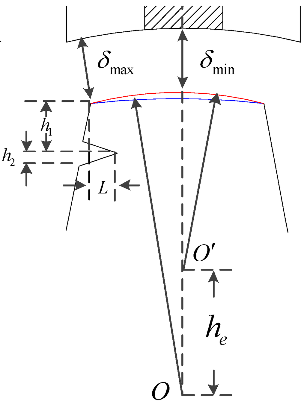 The combination of the eccentric teeth and the notched teeth is shown in Figure 13. In this scheme, by fixing O and moving O’, the eccentric distance of 16.5 mm is adopted based on the results in Section 3.3. Then, keeping the eccentric distance of 16.5 mm unchanged, the design process of v-shape notches is similar to the process shown in Figure 5.