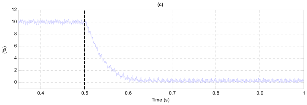 The initial transient in the estimation of (Figure 12a–f) is due to the stabilization process of the PLL. However, this transient is not significant from the viewpoint of control performance because the converter control system only starts when the PLL is stable.