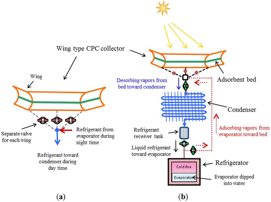 Despite their potential advantages, the existing solar adsorption refrigeration systems are not yet competitive enough to replace electricity-driven refrigerators because of their low efficiency, intermittent operation, and high initial cost. In the present study, a contribution to improve the efficiency of solar adsorption refrigeration systems by using a wing type compound parabolic concentrator (CPC), proposed by the present authors in the previous publication [6], is added to the body of literature on this topic.
