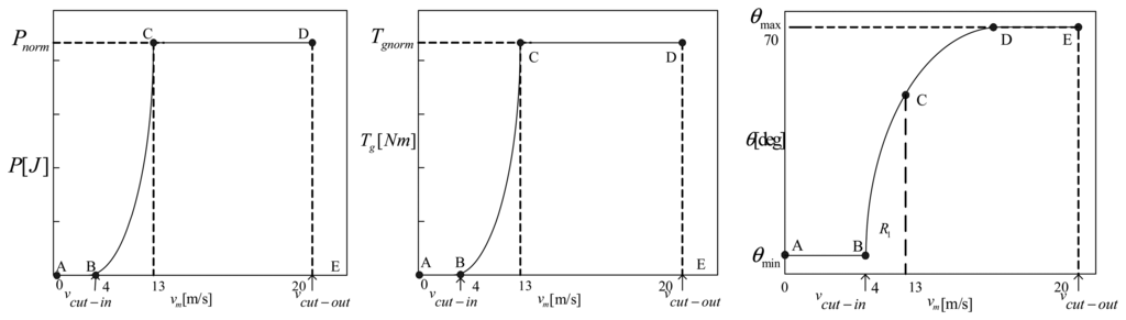 If ν ∈ [νcut–in, νrated], the system needs to maximize the wind harvested power. If ν > νrated, the system needs to limit power to the rated and maintain the stability of the system.