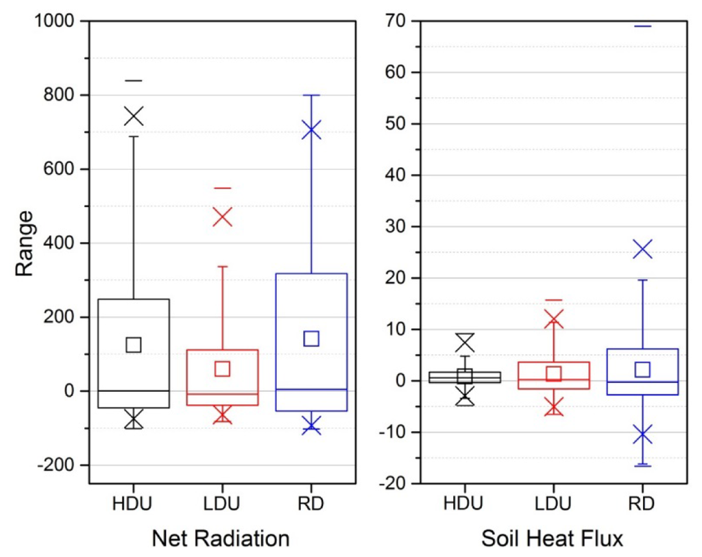 2.2. Urban Sites: Net Radiation and Soil Heat Flux
